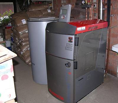 Die Anlage besteht aus dem neuen NOX gesteuerten Öl-/Gas-Kombibrenner von ELCO, einem der modernsten Groß-Kessel der Fa. Loos (Buderus-Gruppe) mit nachgeschaltetem Brennwertmodul sowie elektronischen Pumpen der Firma Grundfos.